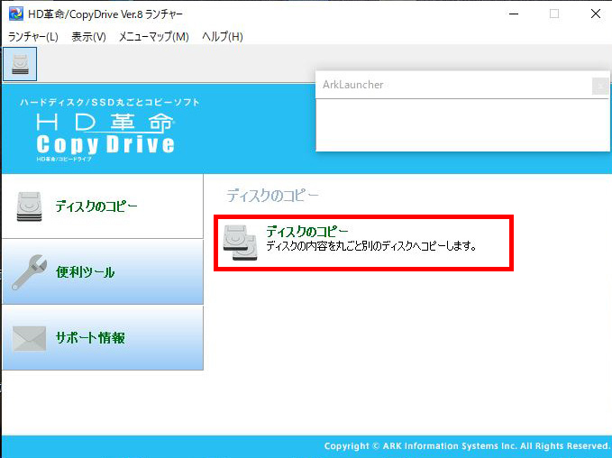 今回使用した『HD革命 / CopyDrive8』は操作画面が非常に分かり易くて有難かったです。